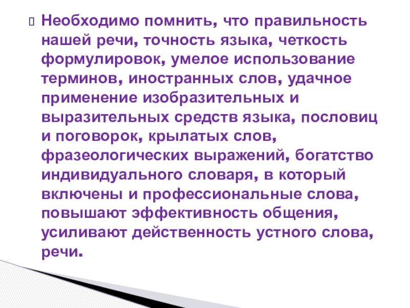 Слайд 12Необходимо помнить, что правильность нашей речи, точность языка, четкость формулировок, умелое