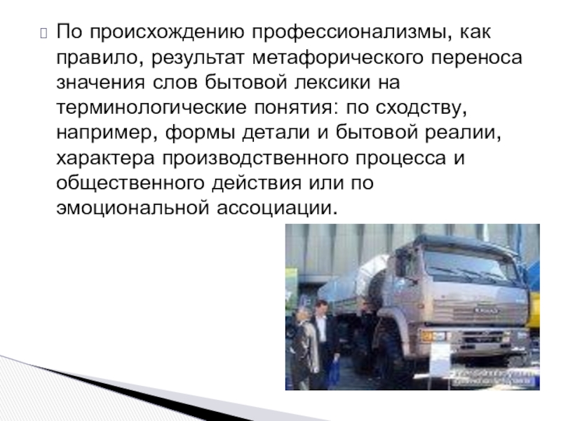 Слайд 3По происхождению профессионализмы, как правило, результат метафорического переноса значения слов бытовой