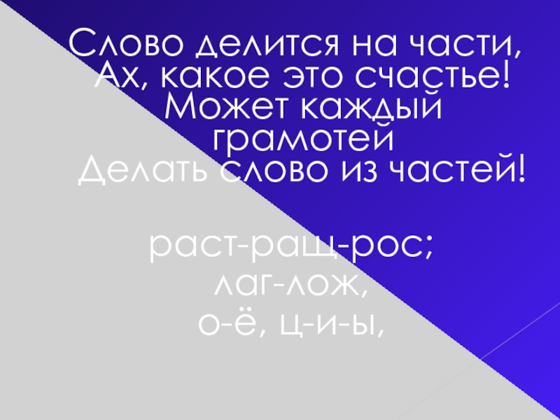 Ах, какое это счастье! Может каждый грамотей Делать слово из частей!