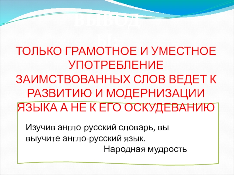 ТОЛЬКО ГРАМОТНОЕ И УМЕСТНОЕ УПОТРЕБЛЕНИЕ ЗАИМСТВОВАННЫХ СЛОВ ВЕДЕТ К РАЗВИТИЮ И