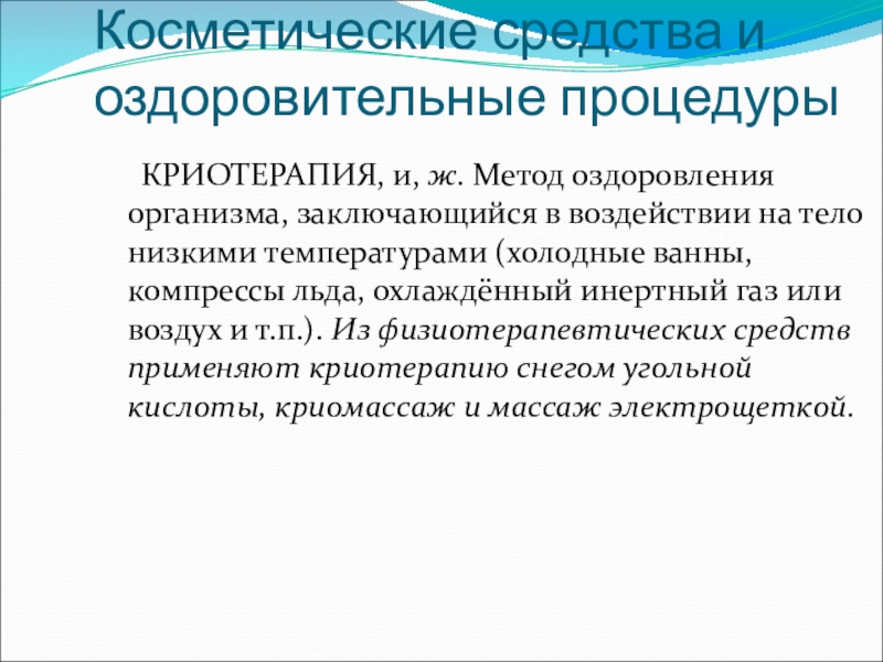 Слайд 18Косметические средства и оздоровительные процедуры