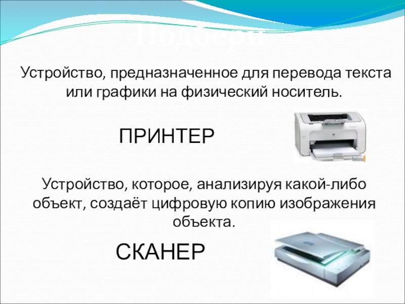Устройство, предназначенное для перевода текста или графики на физический носитель.