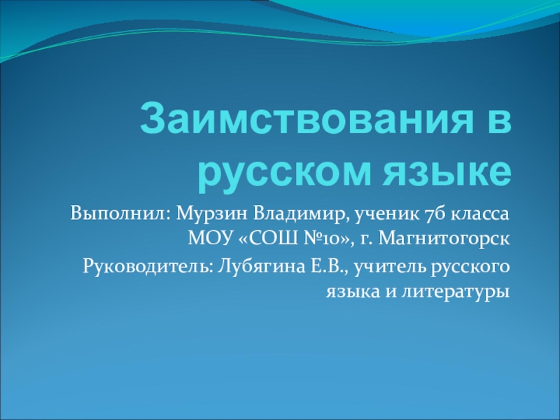 Слайд 1Заимствования в русском языке