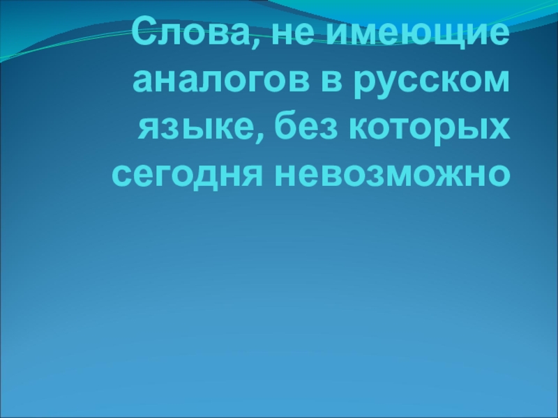 Слайд 2Слова, не имеющие аналогов в русском языке, без которых сегодня невозможно