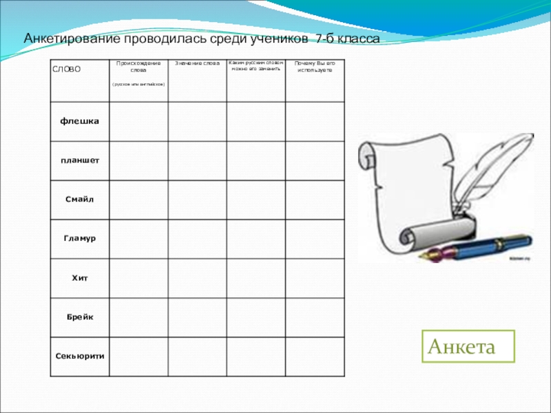 Слайд 12Анкетирование проводилась среди учеников 7-б класса