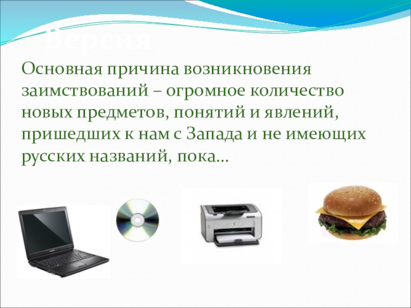 Основная причина возникновения заимствований – огромное количество новых предметов, понятий