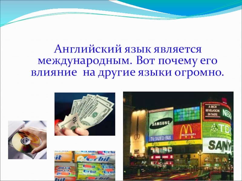 Слайд 8 Английский язык является международным. Вот почему его влияние на