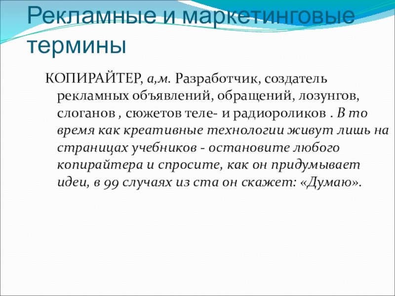 Слайд 19Рекламные и маркетинговые термины