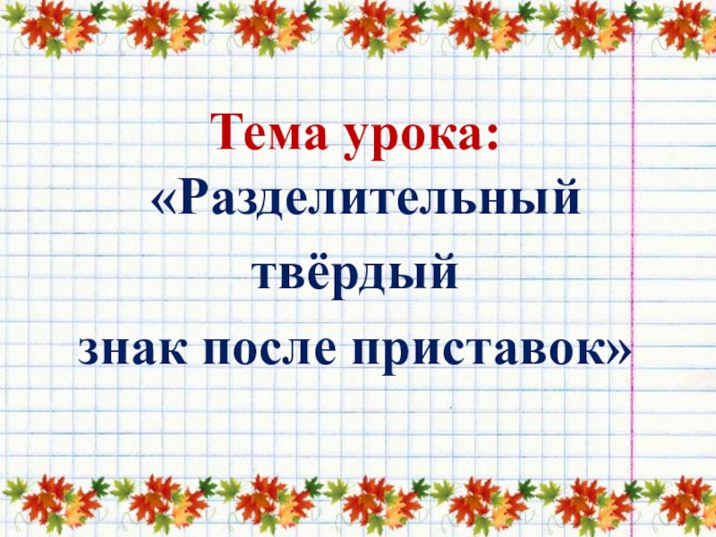 Тема урока: «Разделительный твёрдый знак после приставок»