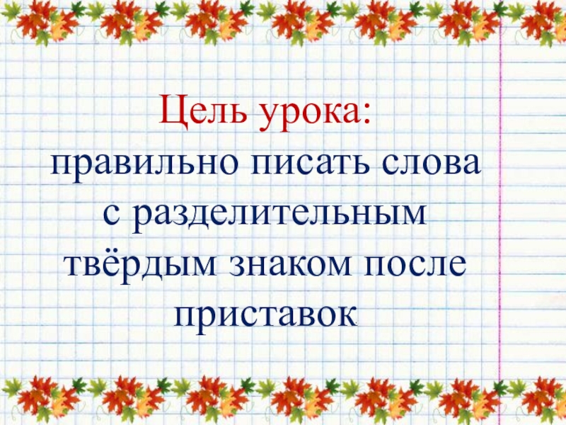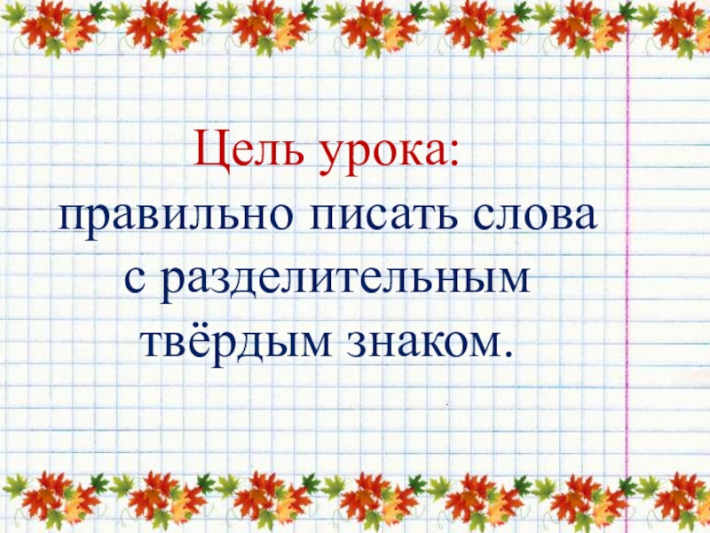 Цель урока:  правильно писать слова с разделительным твёрдым знаком.
