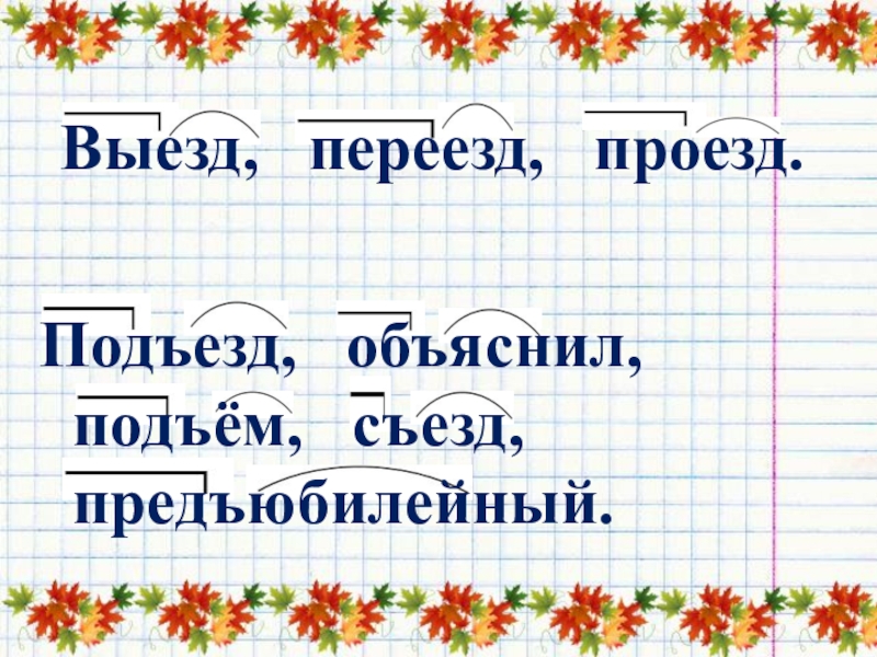 Подъезд, объяснил, подъём, съезд, предъюбилейный.
