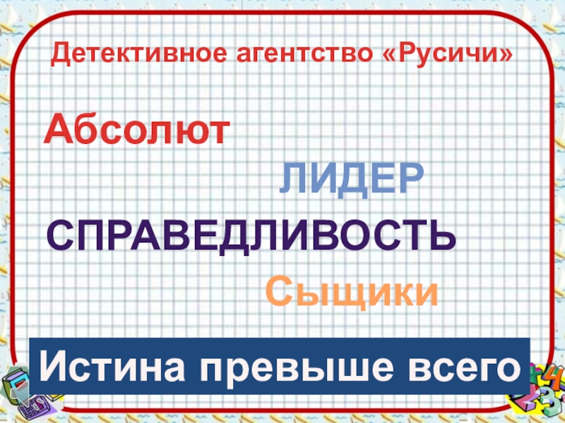 Это сайт презентаций, где можно хранить и обмениваться своими презентациями, докладами, проектами, шаблонами в формате PowerPoint с другими пользователями. Мы помогаем школьникам, студентам, учителям, преподавателям хранить и обмениваться учебными материалами.