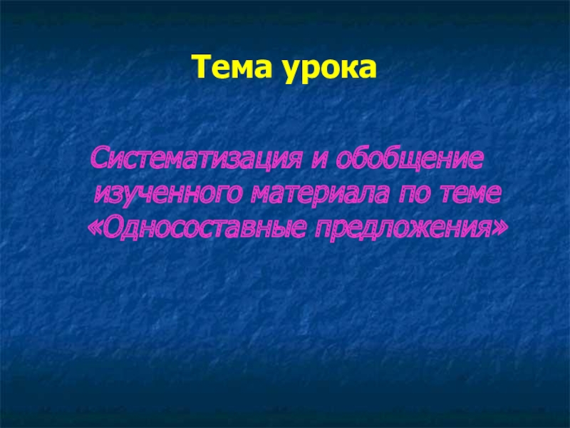 Тема урокаСистематизация и обобщение изученного материала по теме «Односоставные предложения»