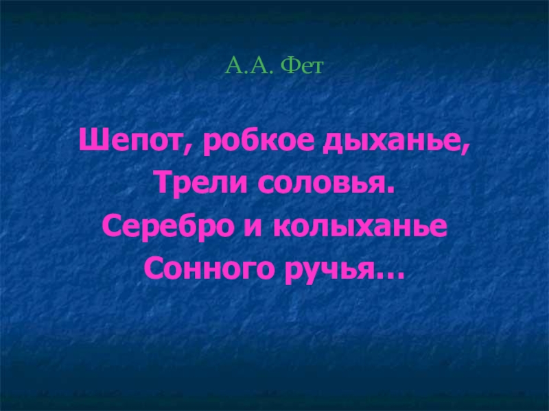 А.А. ФетШепот, робкое дыханье,Трели соловья.Серебро и колыханьеСонного ручья…