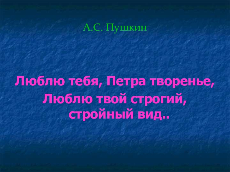А.С. ПушкинЛюблю тебя, Петра творенье,Люблю твой строгий, стройный вид..