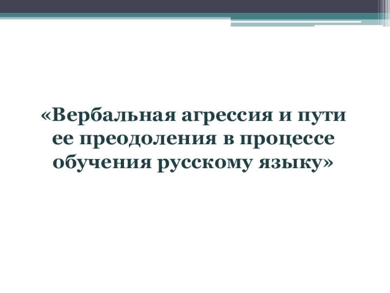 Слайд 1«Вербальная агрессия и пути ее преодоления в процессе обучения русскому языку»