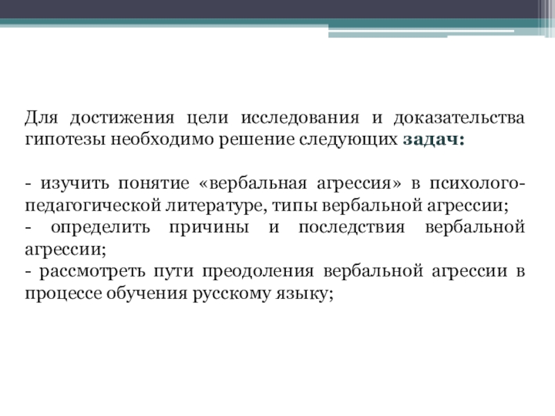- рассмотреть пути преодоления вербальной агрессии в процессе обучения русскому языку;