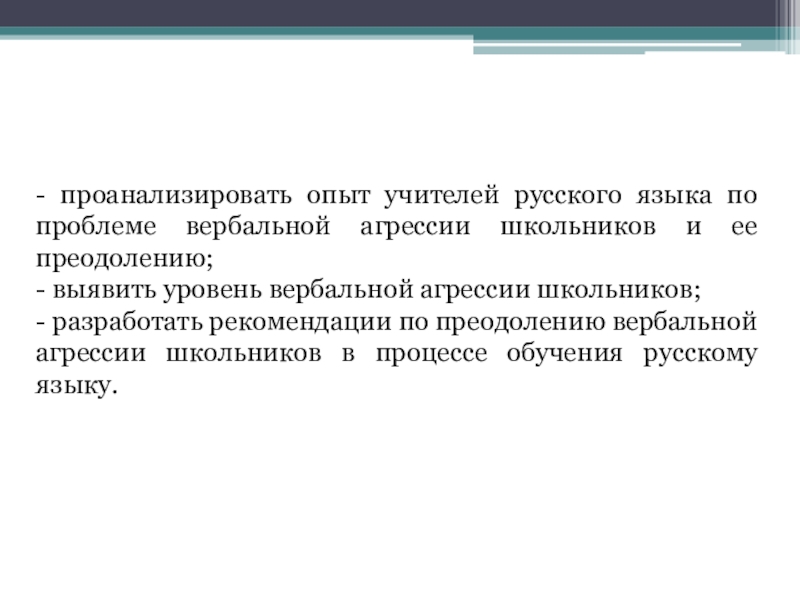 Слайд 5- проанализировать опыт учителей русского языка по проблеме вербальной агрессии школьников