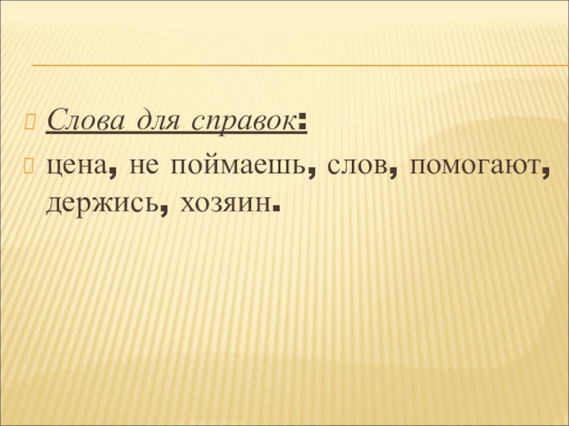 Слова для справок: цена, не поймаешь, слов, помогают, держись, хозяин.