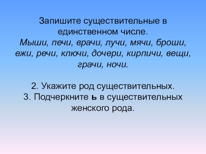 ежи, речи, ключи, дочери, кирпичи, вещи,