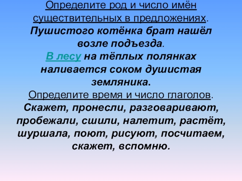 Скажет, пронесли, разговаривают, пробежали, сшили, налетит, растёт, шуршала, поют, рисуют, посчитаем, скажет, вспомню.