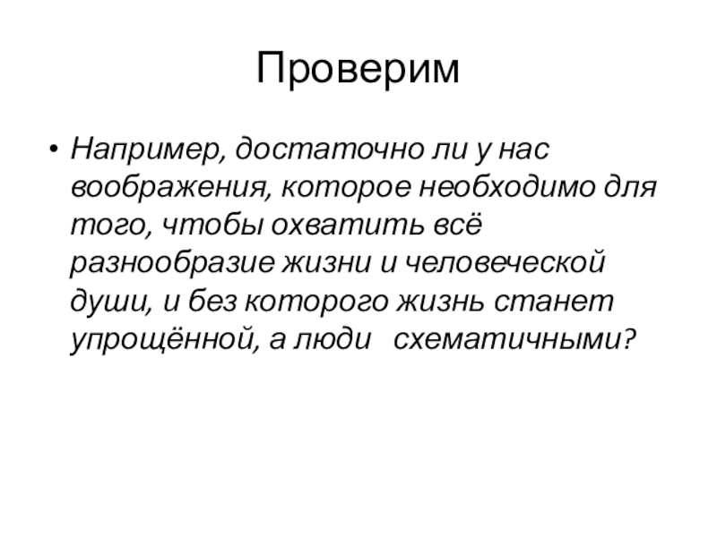 Например, достаточно ли у нас воображения, которое необходимо для того, чтобы