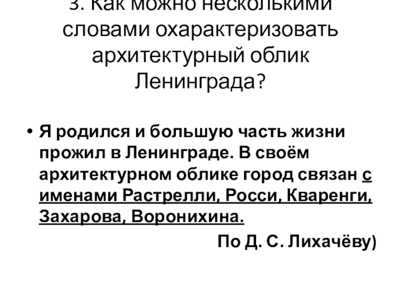 Слайд 93. Как можно несколькими словами охарактеризовать архитектурный облик Ленинграда?