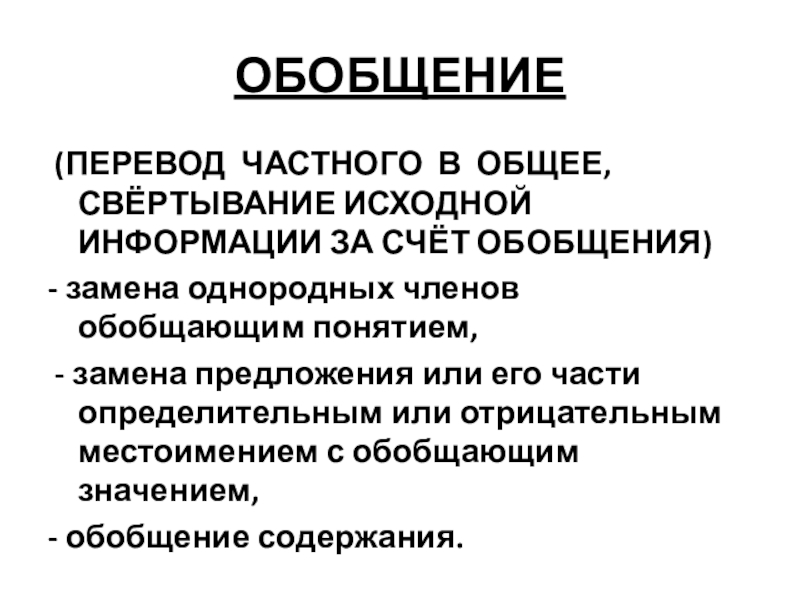 (ПЕРЕВОД ЧАСТНОГО В ОБЩЕЕ, СВЁРТЫВАНИЕ ИСХОДНОЙ ИНФОРМАЦИИ ЗА СЧЁТ ОБОБЩЕНИЯ)