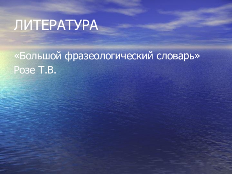 ЛИТЕРАТУРА«Большой фразеологический словарь»Розе Т.В.