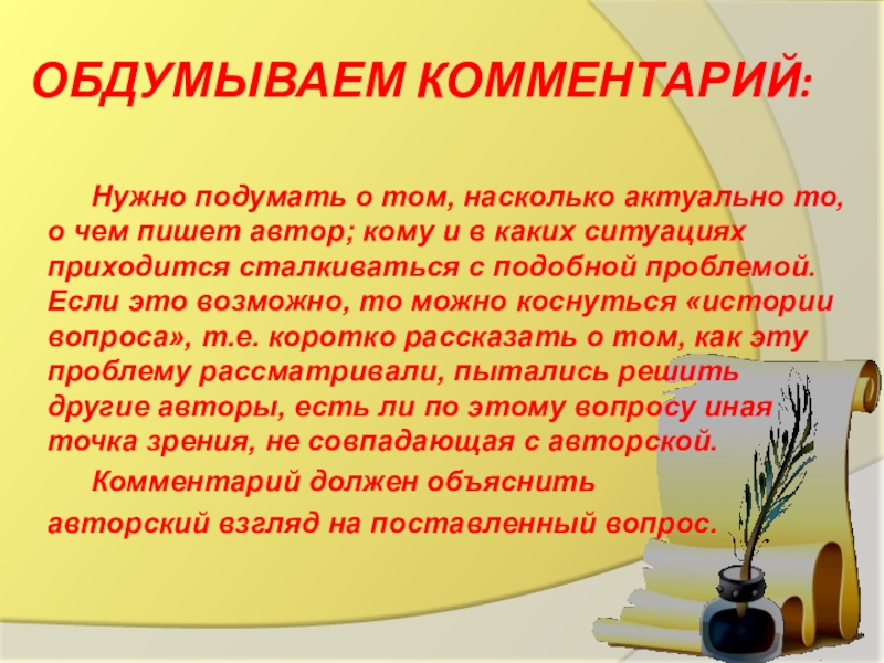 Слайд 8Обдумываем комментарий: