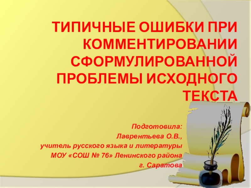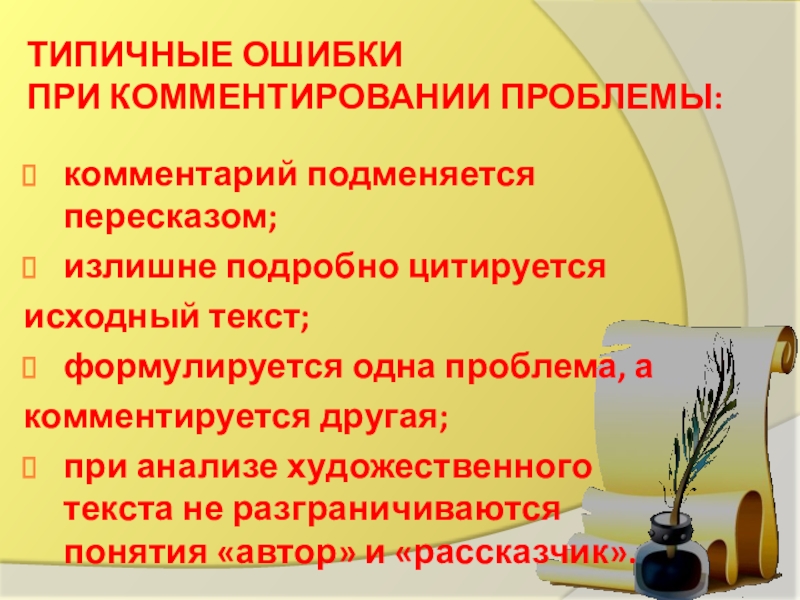 Слайд 1Типичные ошибки при комментировании сформулированной проблемы исходного текста