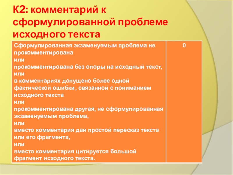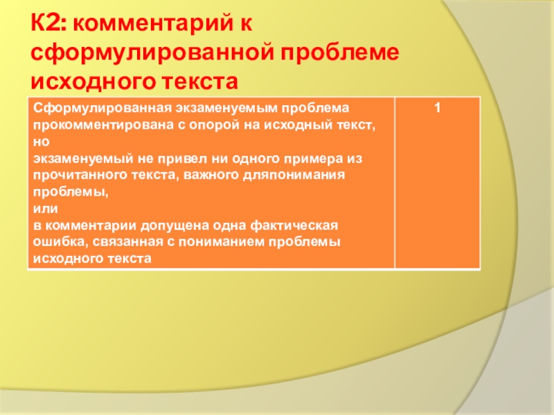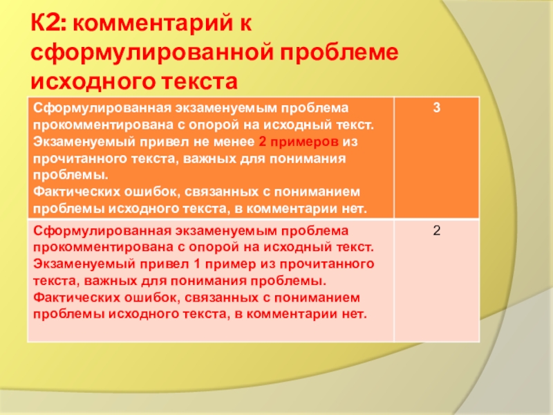 Слайд 2К2: комментарий к сформулированной проблеме исходного текста