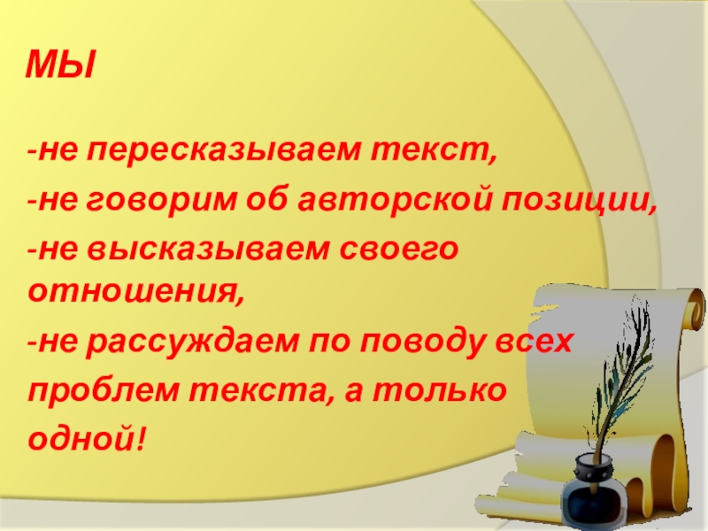 • Задача – прокомментировать только сформулированные проблемы только данного текста!!!