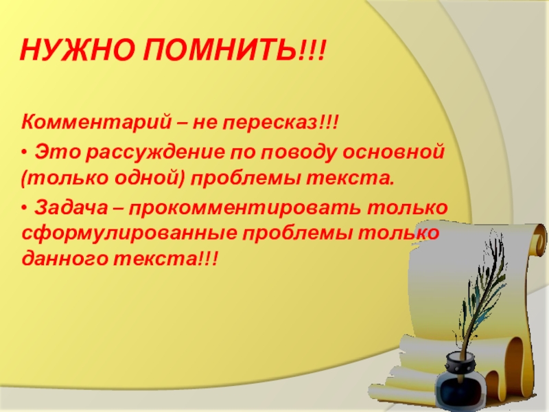 Комментарий – не пересказ!!!