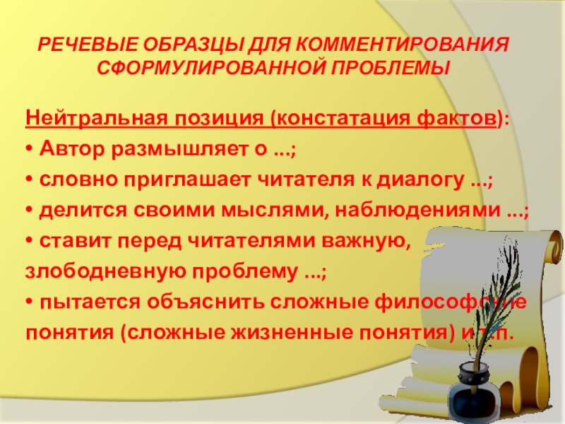 Слайд 17Речевые образцы для комментирования сформулированной проблемы