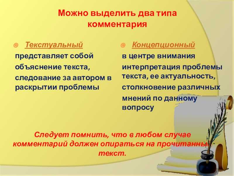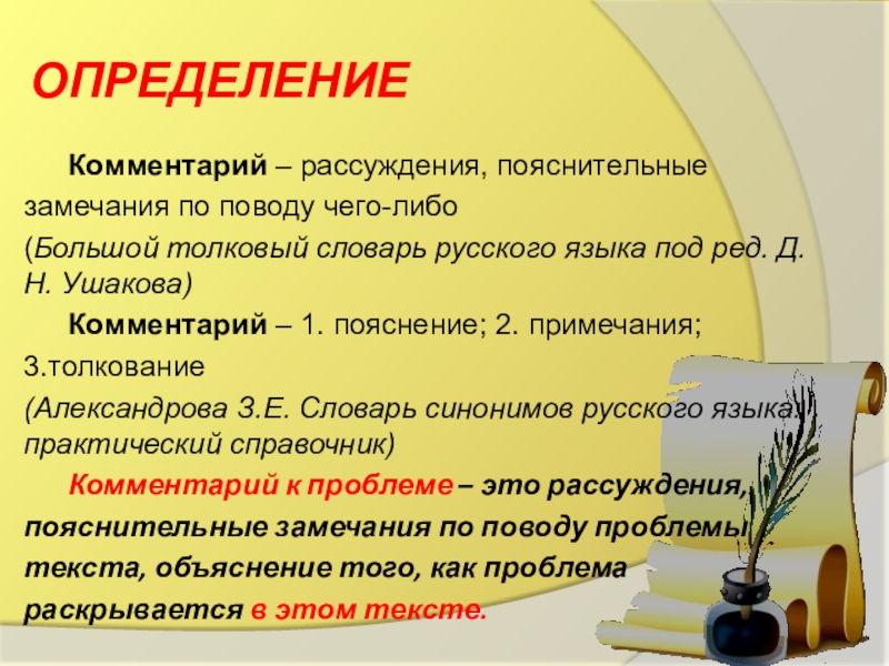 Комментарий – рассуждения, пояснительные