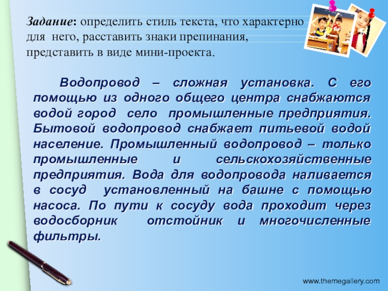 Задание: определить стиль текста, что характерно для него, расставить знаки препинания, представить в виде мини-проекта.