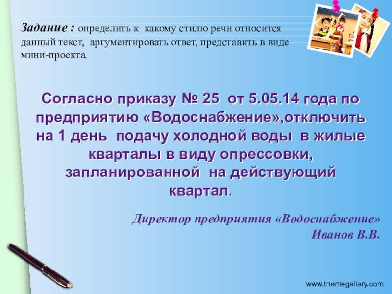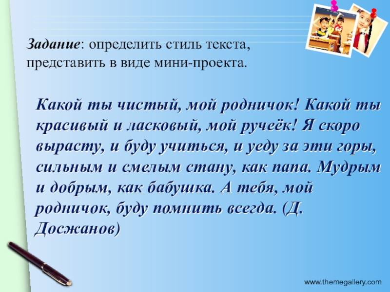 Задание: определить стиль текста,представить в виде мини-проекта.