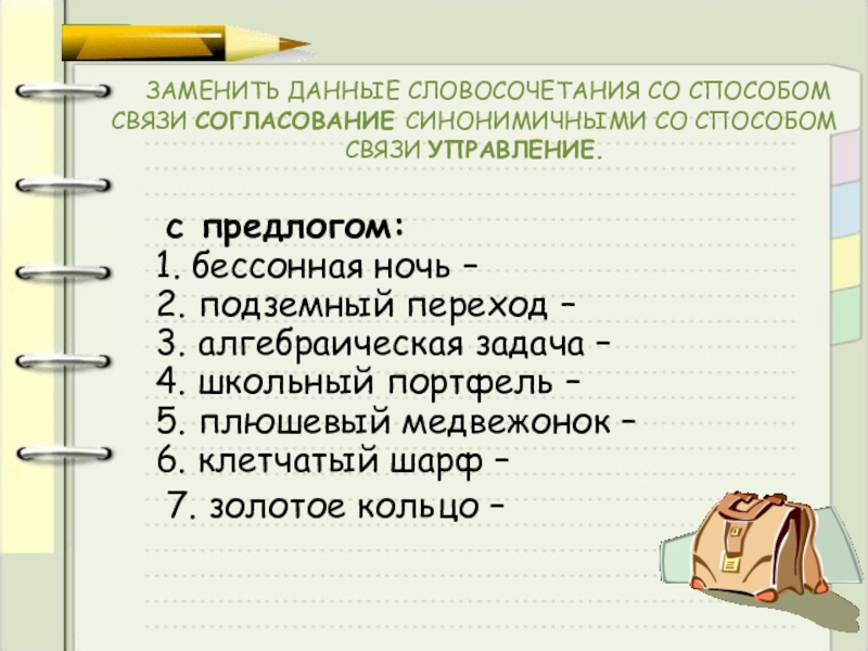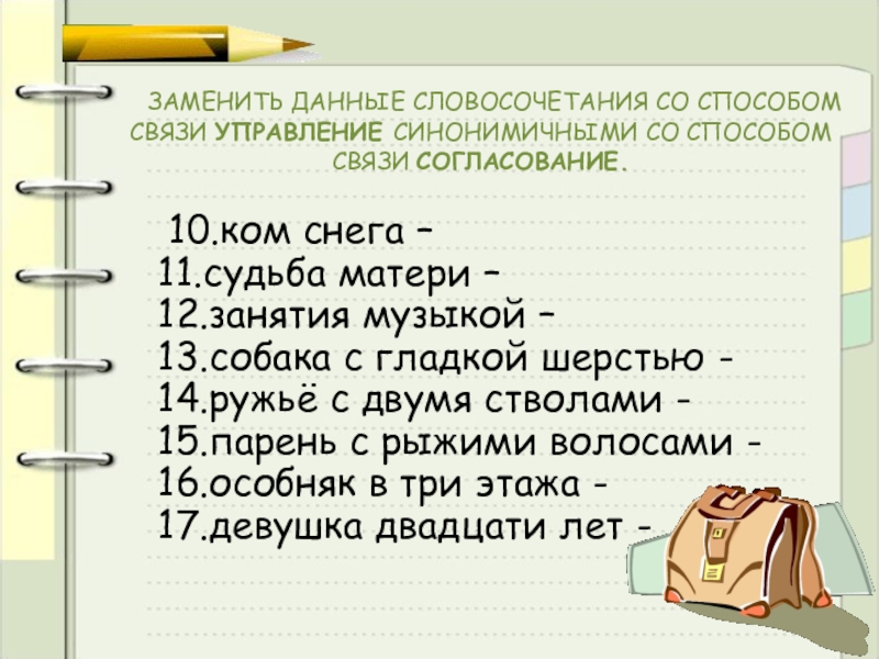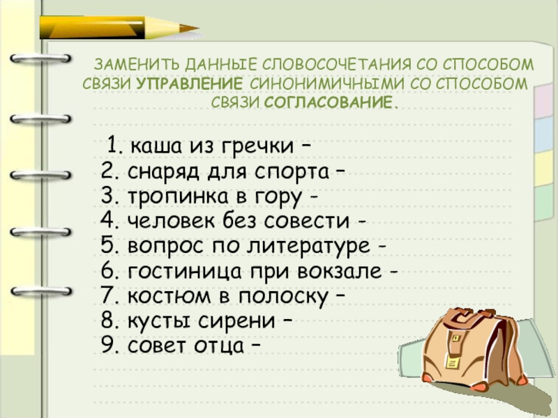 ЗАМЕНИТЬ ДАННЫЕ СЛОВОСОЧЕТАНИЯ СО СПОСОБОМ СВЯЗИ СОГЛАСОВАНИЕ СИНОНИМИЧНЫМИ СО