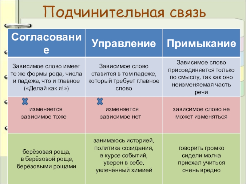 такой способ подчинительной связи, при котором зависимое слово ставится