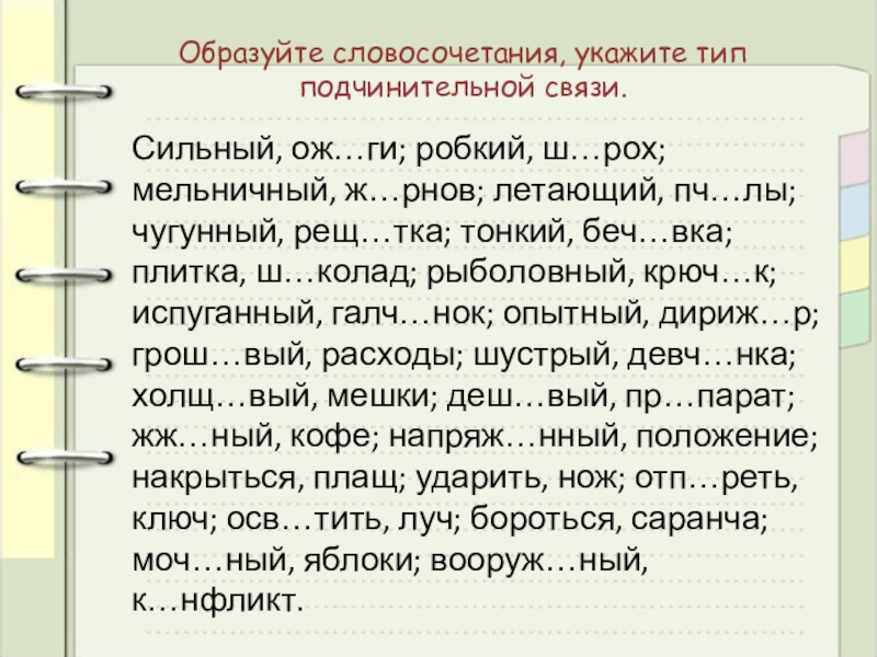 Слайд 17Образуйте словосочетания, укажите тип подчинительной связи.