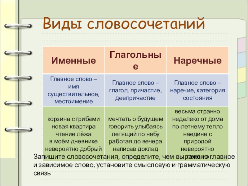 Запишите словосочетания, определите, чем выражено главное и зависимое слово,