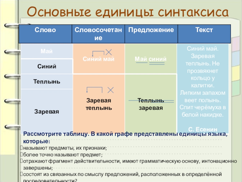 Рассмотрите таблицу. В какой графе представлены единицы языка, которые: