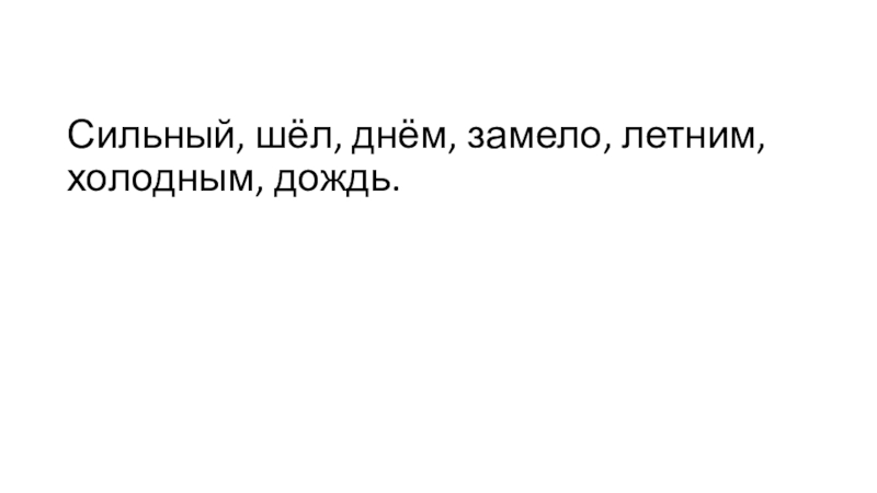 Слайд 4Сильный, шёл, днём, замело, летним, холодным, дождь.