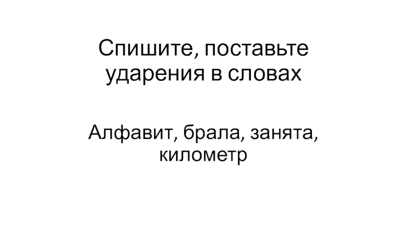Слайд 1Спишите, поставьте ударения в словах
