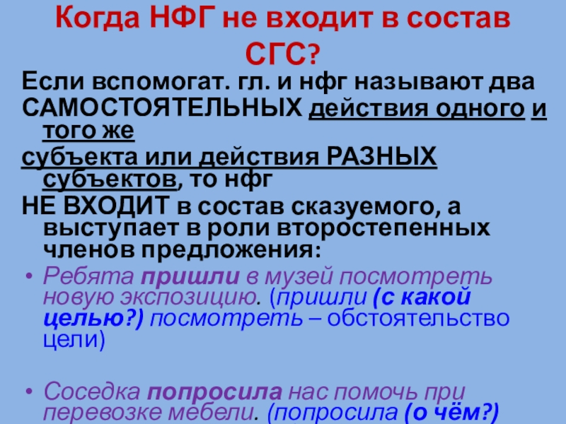 Слайд 7Когда НФГ не входит в состав СГС?