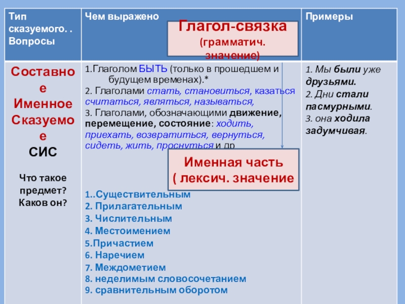 Примечание1. В настоящем времени связка нулевая.