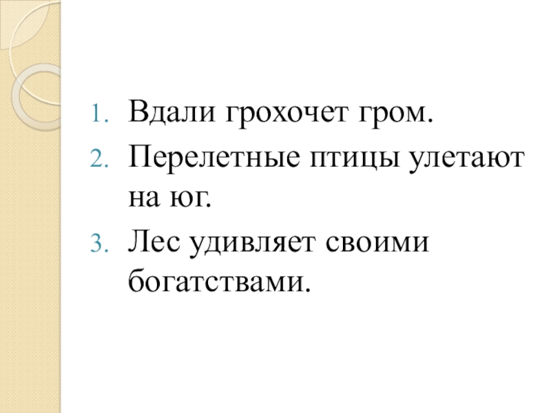 Распространите предложения, запишите их, подчеркните в них грамматические основы. Грохочет гром. Птицы улетают. Лес удивляет.