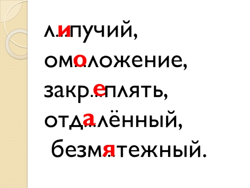 л…пучий, ом…ложение, закр…плять, отд…лённый, безм…тежный.иоеая