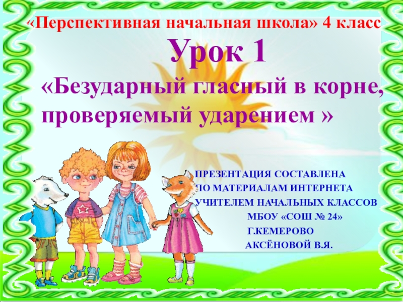 «Безударный гласный в корне, проверяемый ударением »